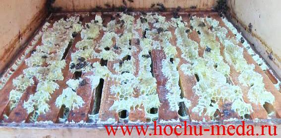 А вот незрелый «мёд» - густой нектар, это то, что Вас окружает на каждом шагу, то к чему Вы привыкли и употребляете. Вместо биологически-активных веществ, что должны были добавить пчёлы, Вы платите за воду. Процесс получения зрелого мёда сопряжён с большими затратами сил и времени, уменьшением количества мёда, так как пчёлы, занятые переработкой не занимаются сбором нектара, а просто теряют своё здоровьё, заменяя воду из нектара на свои биологически-активные вещества, за что и ценится Настоящий мёд. При этом пчёлы выделяют много воска, которым склеивают всё подряд и создают трудности при работе и увеличивают время работы, чтобы оторвать верхний корпус и всё это почистить.
